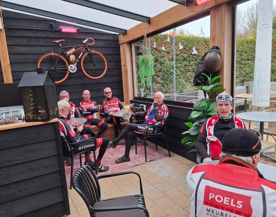 Na de pauze stond er nog 28 km op het menu, maar nu mét wind mee. Dat ging via Zeilberg, Griendtsveen, Veulen en America, en dat was duidelijk te merken: het tempo ging lekker omhoog. Af en toe liet de zon zich even zien, maar die werd net zo snel weer verstopt achter een donkere wolk. Gelukkig bleef het droog – we mogen ook niet alles willen. Dankzij het goede tempo waren we al rond 12:00 uur terug in Horst. De meeste rijders gingen huiswaarts, maar zoals het hoort, doken enkelen nog De Beurs in voor een “afzakkertje” – puur voor het herstel natuurlijk. Wij Zaerumse fietsers reden netjes naar huis. Al met al een mooie rit met een tempo dat voor iedereen goed te volgen was – precies zoals het hoort. En geen zorgen: morgen, 2de Paasdag, staat er gewoon weer een rit gepland. De paaseieren moeten er tenslotte weer af!