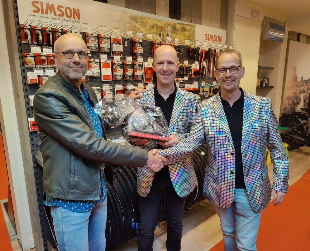 Jubileum weekend Lommen Tweewielers: Afgelopen weekend had onze sponsor Lommen Tweewielers een heel feest-weekend ter gelegenheid van hun 70 jarig jubileum. Op vrijdag mochten de bestuursleden naar de aftrap met een gezellig en goed verzorgd avondje Back to the Seventies in de Feesttent voor de winkel. Onze voorzitter maakte van de gelegenheid gebruik om Dave en Hugo een mooi presentje aan te bieden. Ook op zondag was het gezellig druk bij de open dag.